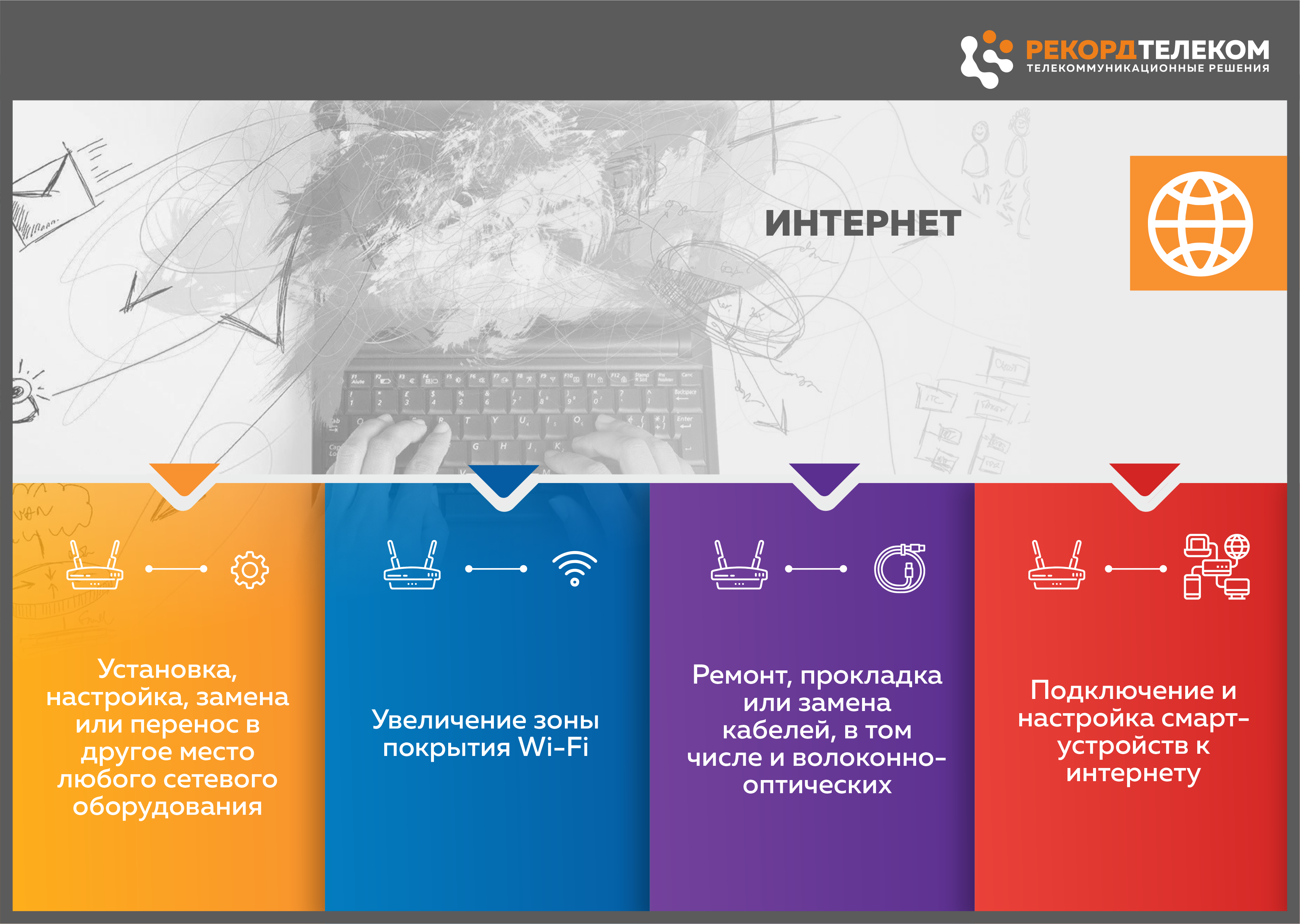 - монтаж и обслуживание беспроводных широкополосных систем передачи данных для организации локальных вычислительных сетей, систем передачи голоса, видео наблюдения, сигнализации и т.д.
